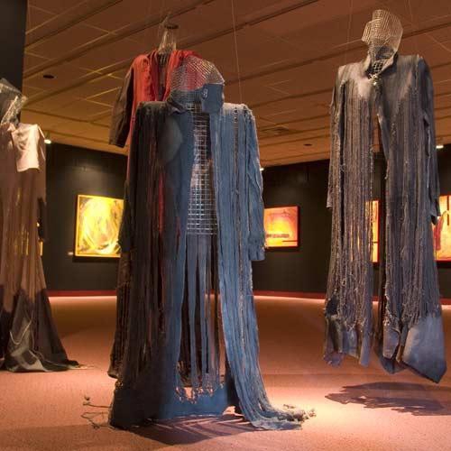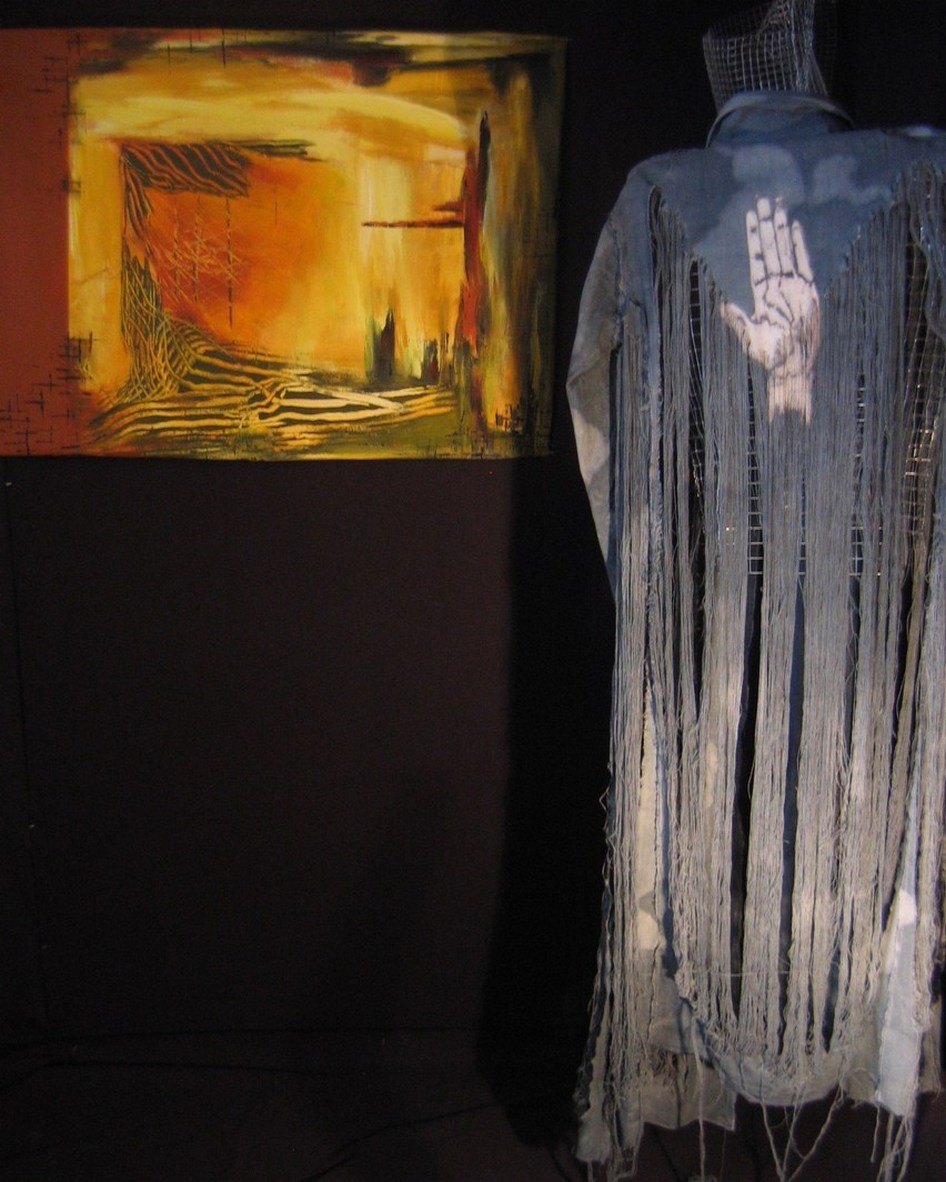 Derrière le masque, derrière le vêtement, que reste-t-il? Ce vêtement qui cache finalement le territoire que l’on met une vie à arpenter. Cette armure qu’il convient de «Laisser au vestiaire» afin d’établir le vrai dialogue avec l’autre. Alors surgit le besoin de faire et de défaire. Faire un manteau et le défaire fil par fil. La peinture demeure comme source de la lumière qu’on y découvre.