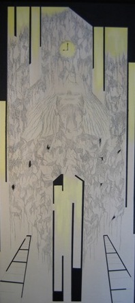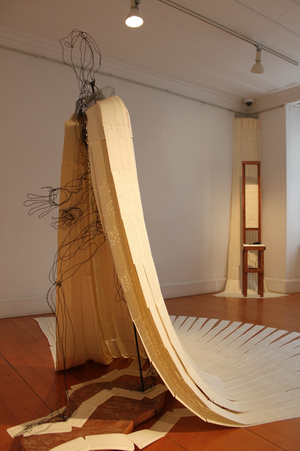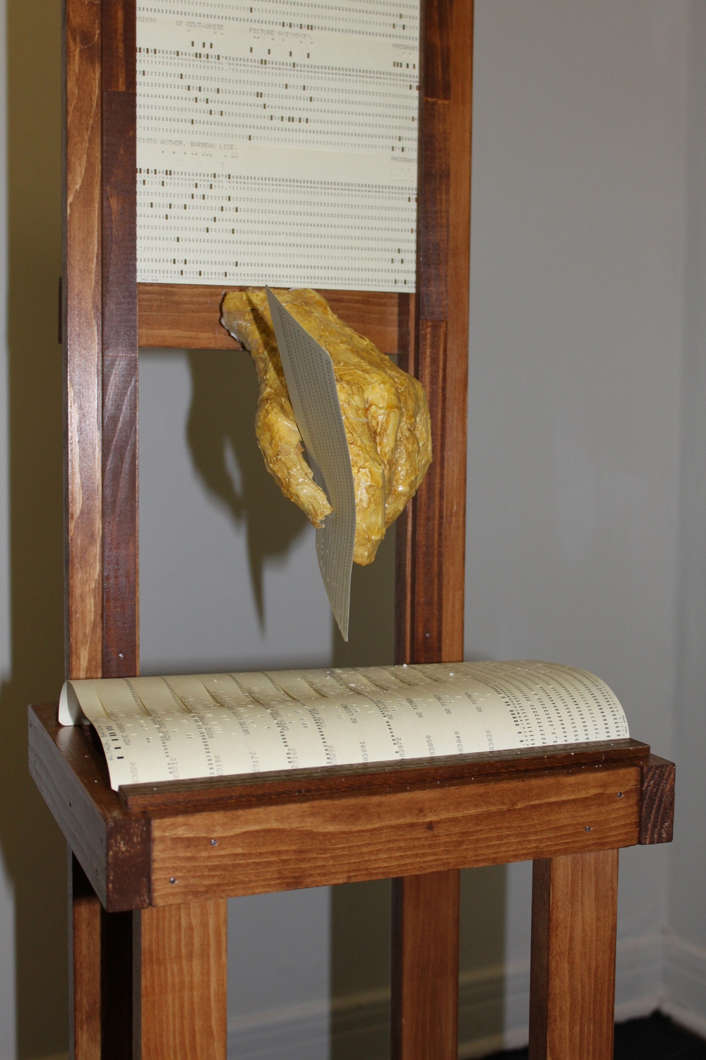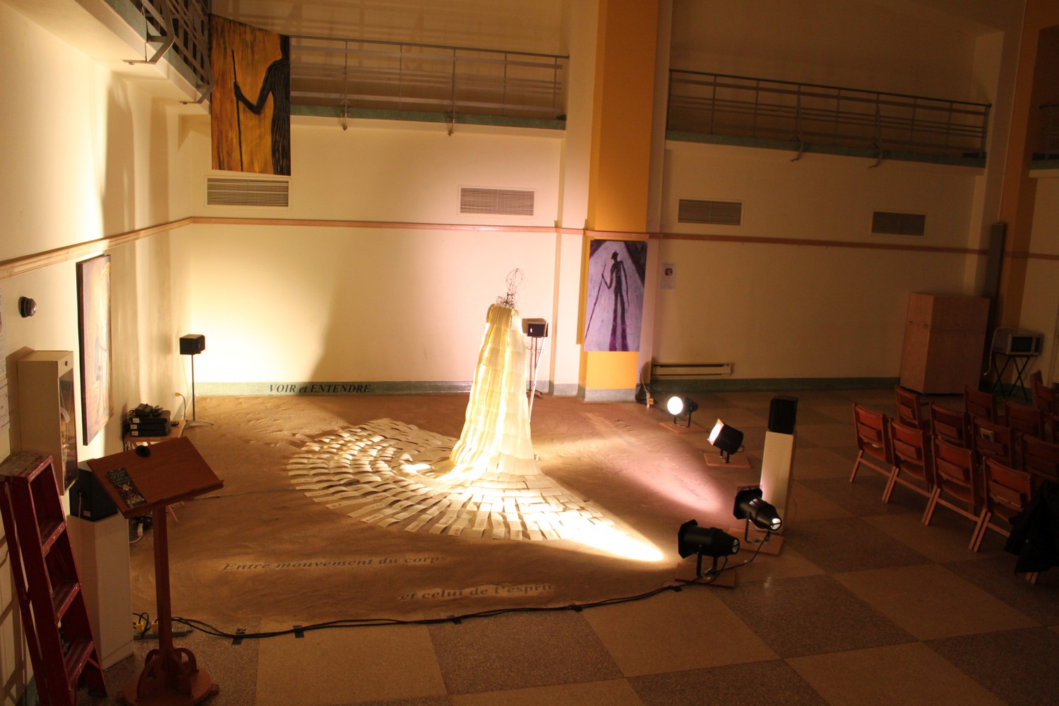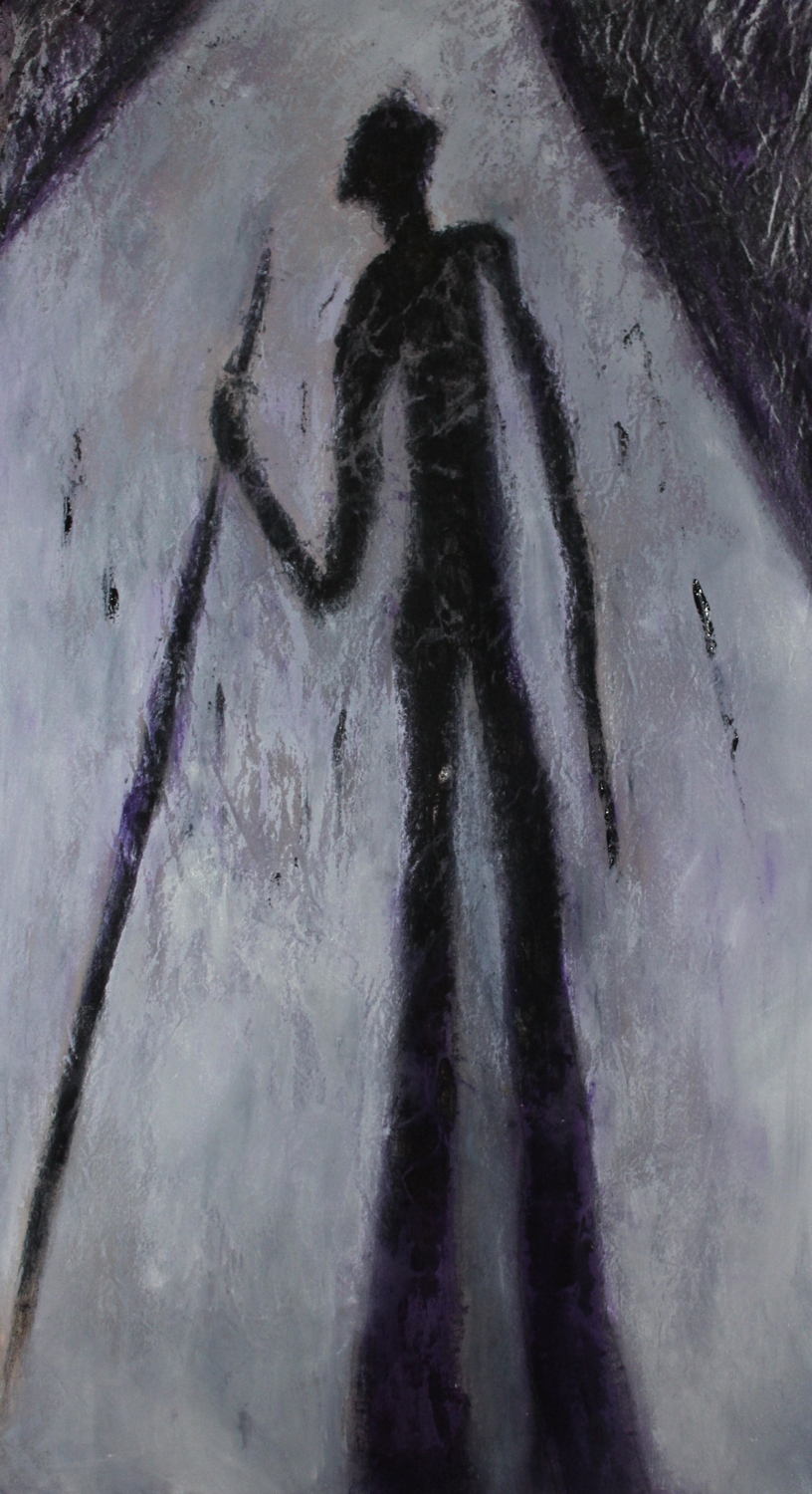 L’Ancêtre s’est mis en marche et est devenu «Le Marcheur». Il marche, il a une voix, il entre dans un lieu, une musique l’accompagne. La musique de Denis Dion collaborateur de l’exposition. Le manteau se pare d’une centaine de petites ‘icônes’.